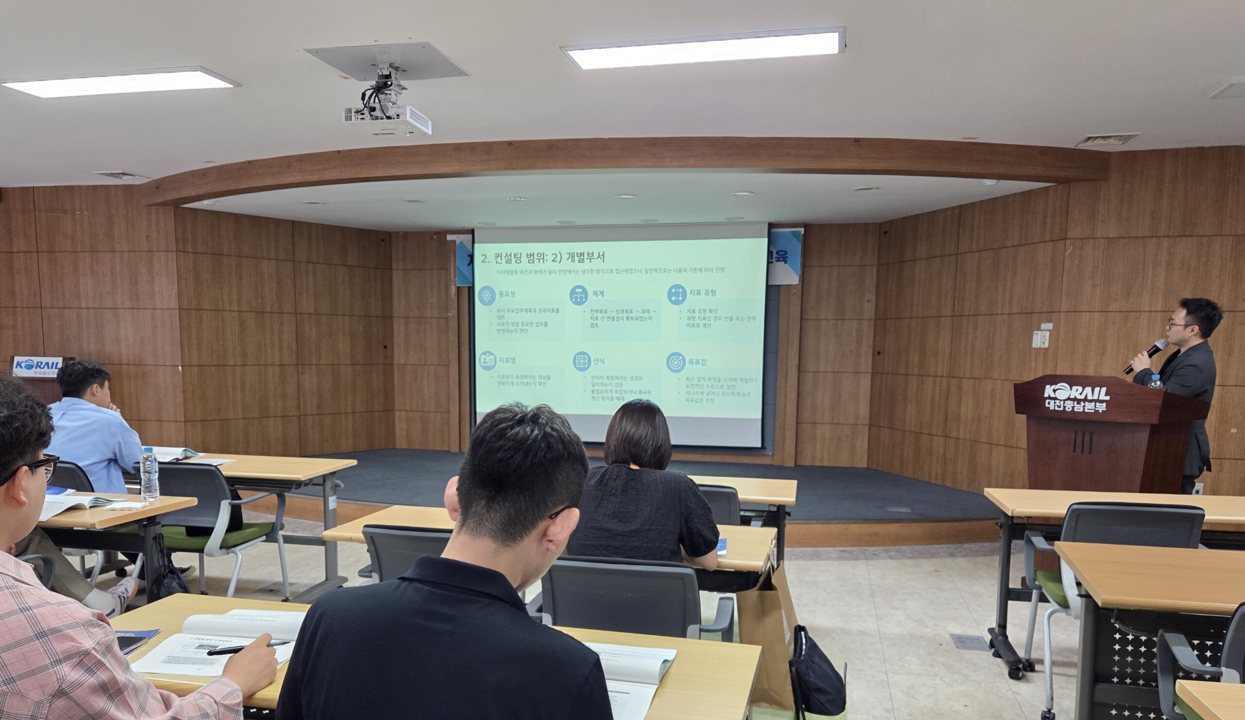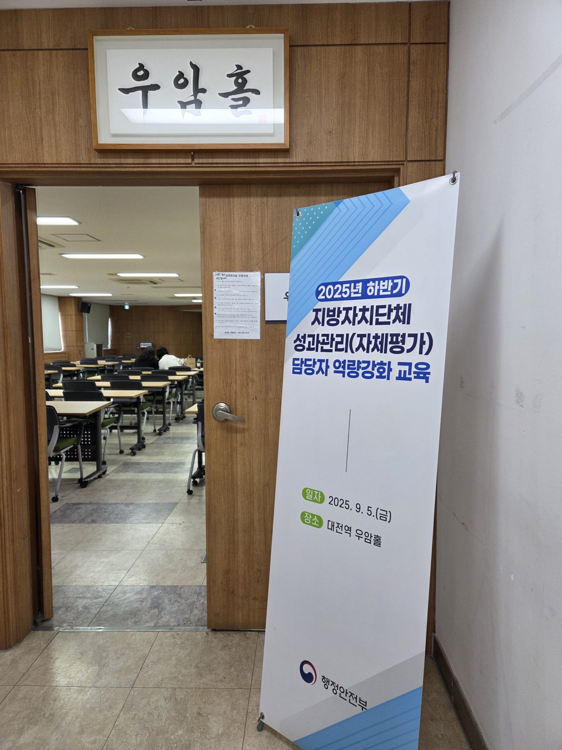 하반기 교육은 2025년 9월 5일(금) 대전역 우암홀에서 열렸습니다. 상반기 교육 내용에 더해 ‘지자체 성과관리(자체평가) 컨설팅 결과 공유’ 세션이 추가되어, 실제 컨설팅을 통해 도출된 개선 사례와 시사점을 함께 나누는 시간이 마련되었습니다.