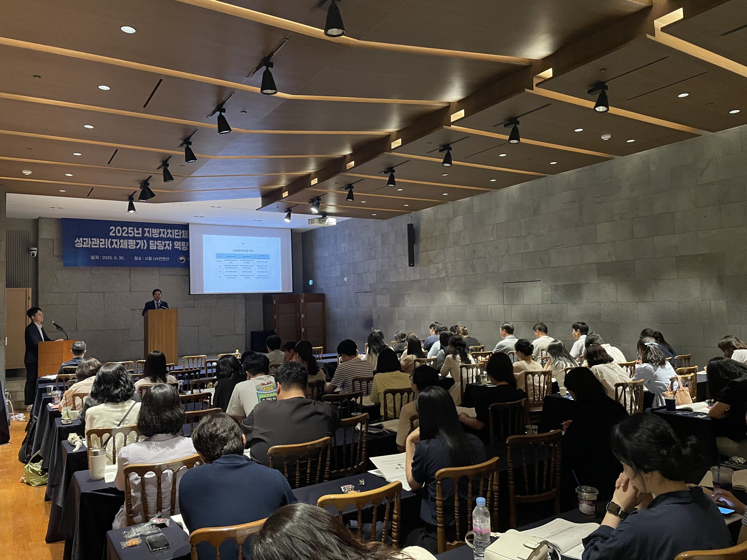 상반기 교육은 2025년 6월 30일(월) 서울 LW컨벤션에서 진행되었습니다. ‘성과관리의 이해’, ‘지자체 성과관리(자체평가) 표준안’, ‘성과지표 개발’을 주제로 강의와 토론이 이어졌으며, 활발한 의견 교류가 이루어졌습니다.