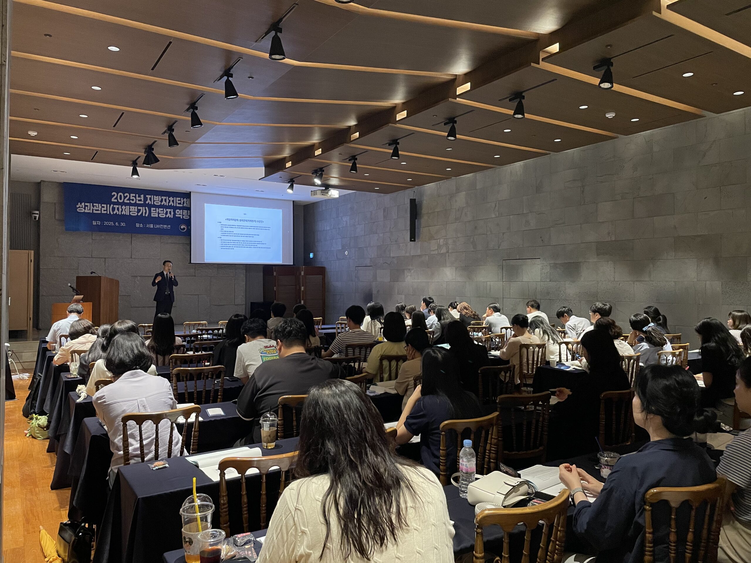 본 연구원은 행정안전부의 「2025 지방자치단체 성과관리(자체평가) 지원사업」의 일환으로, 전국 243개 지방자치단체 성과관리(자체평가) 총괄부서 담당자를 대상으로 성과관리 역량강화 교육을 개최하였습니다. 해당 교육은 지자체의 성과관리 체계를 내실화하고 자체평가 역량을 제고하기 위해 매년 정례적으로 실시되고 있습니다.